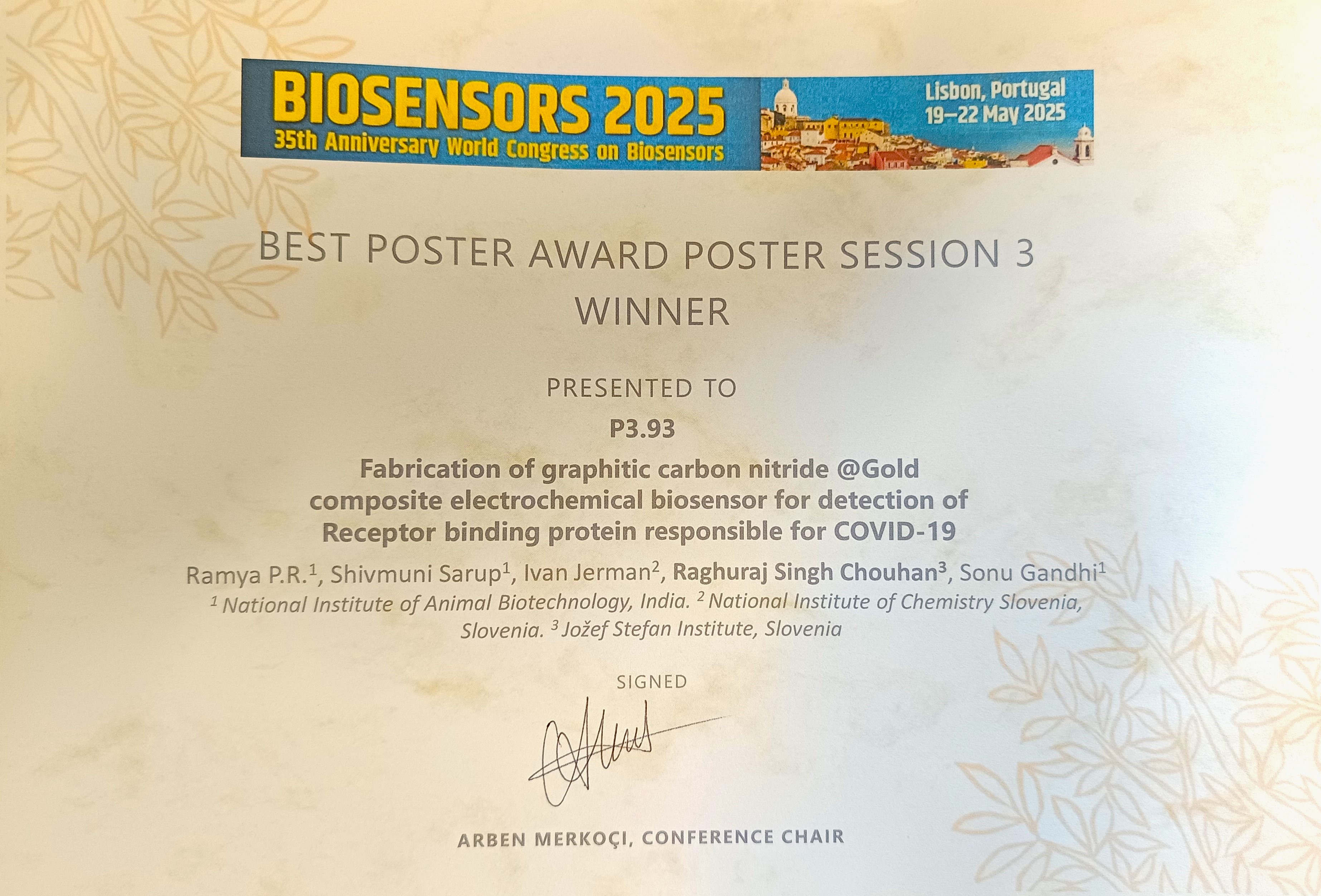 We are proud to share that our colleague dr. Raghuraj S. Chouhan has received the Best Poster Award at the prestigious Biosensors 2025 – 35th Anniversary World Congress on Biosensors, held from 19–22 May 2025 in Lisbon, Portugal.
