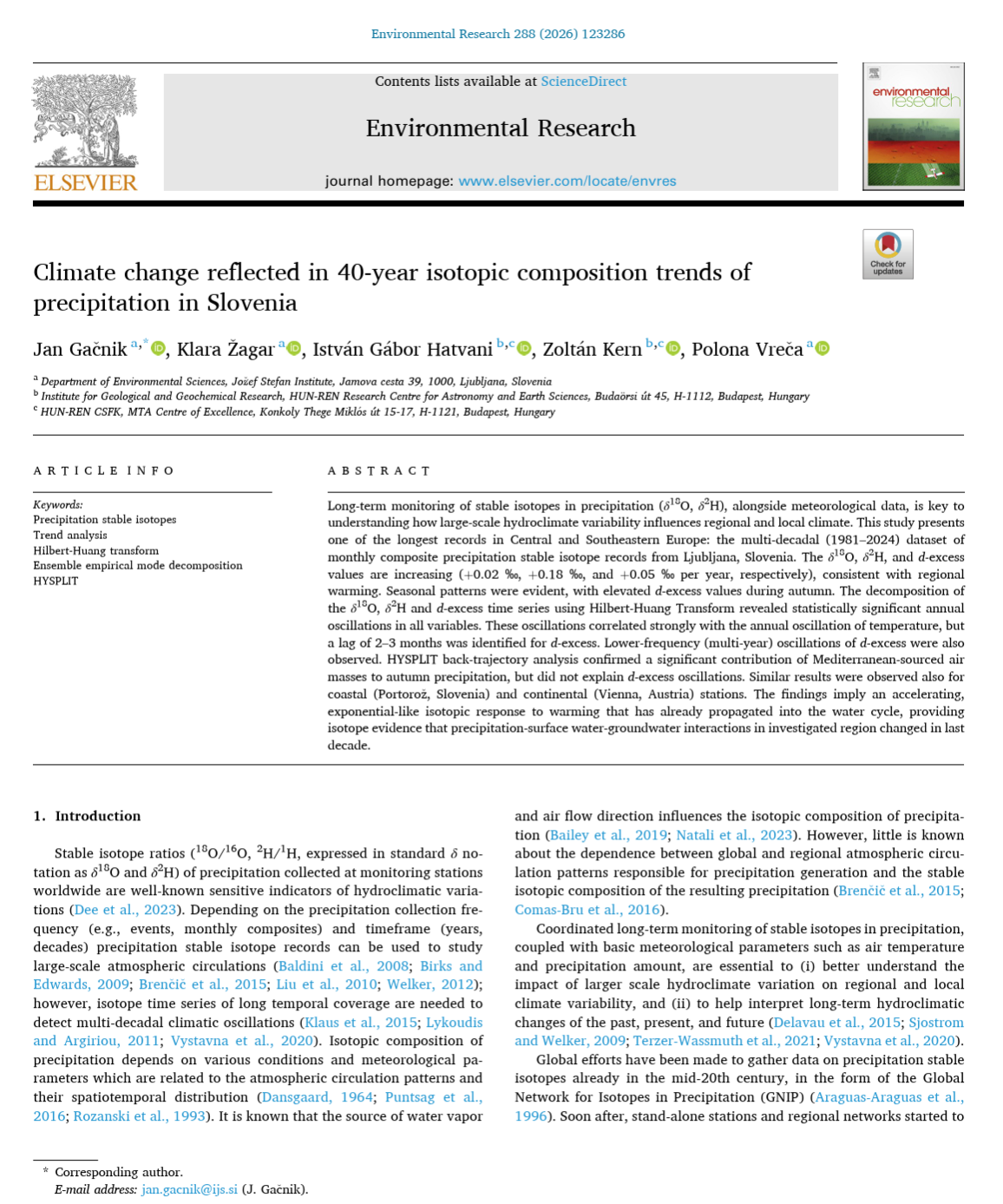 📄 Climate change reflected in 40-year isotopic composition trends of precipitation in Slovenia