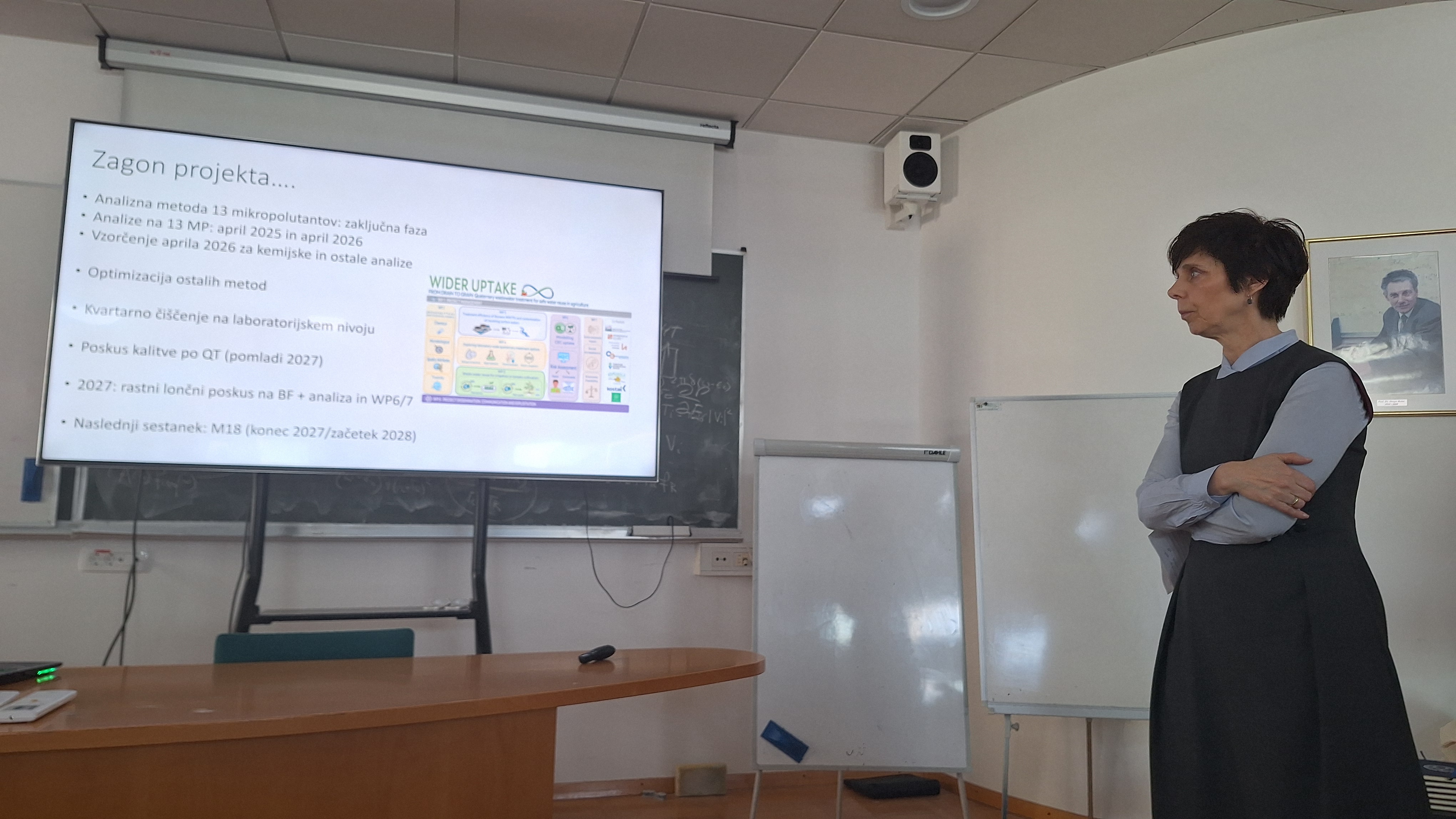 Na Institutu »Jožef Stefan« je 20. marca 2026 potekal skupni strokovni dogodek, ki je združil zaključni sestanek projekta UPTAKE in uvodni (“kick-off”) sestanek projekta WIDER UPTAKE. Raziskovalci so predstavili ključne rezultate o privzemu onesnaževal v rastlinah, kakovosti pridelkov ter možnostih ponovne uporabe prečiščene odpadne vode in blata v kmetijstvu, poseben poudarek pa je bil namenjen tudi razvoju naprednih (bio)analitskih metod, modeliranju tveganj in oceni širših okoljskih ter družbeno-ekonomskih učinkov.
